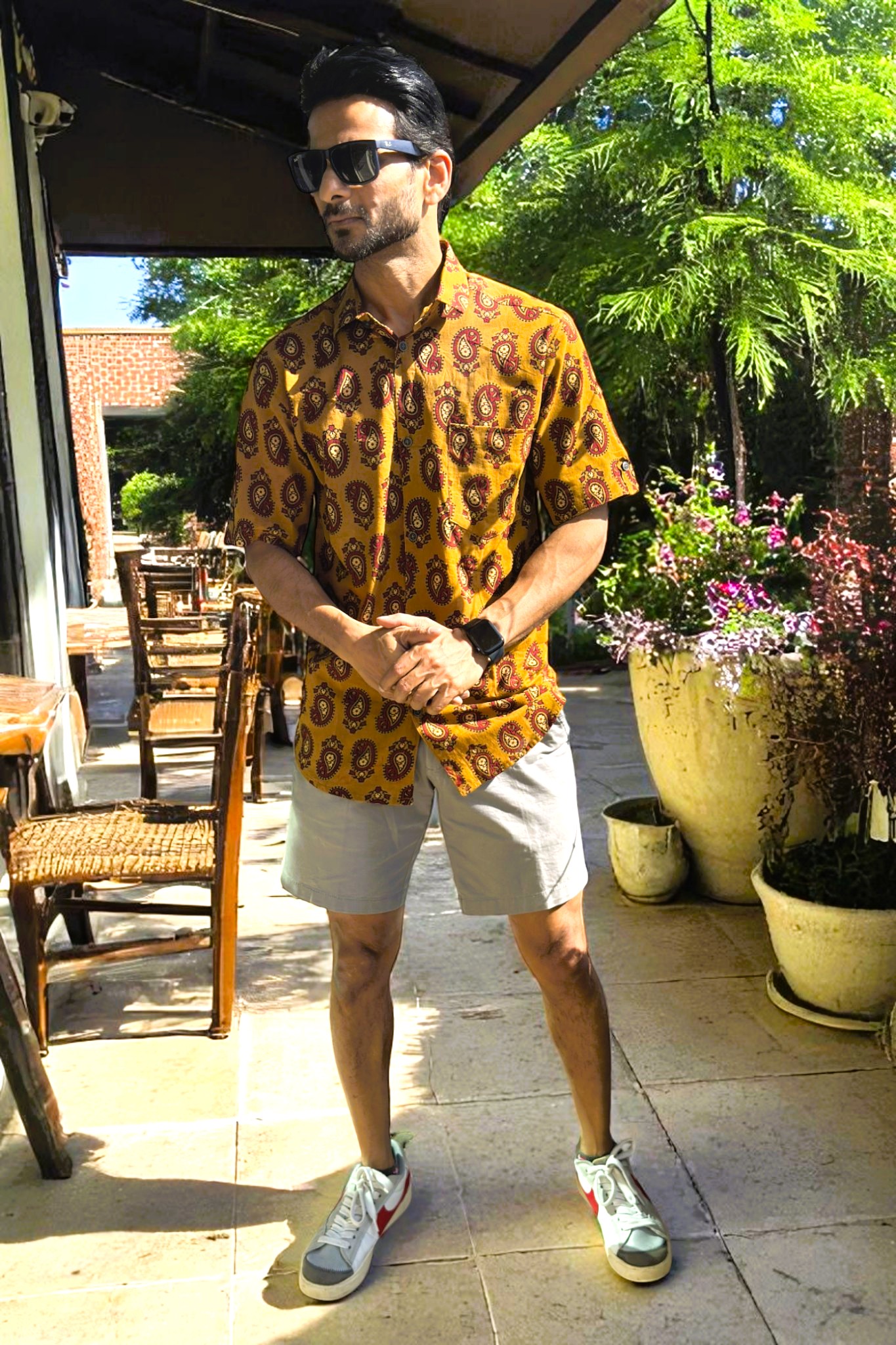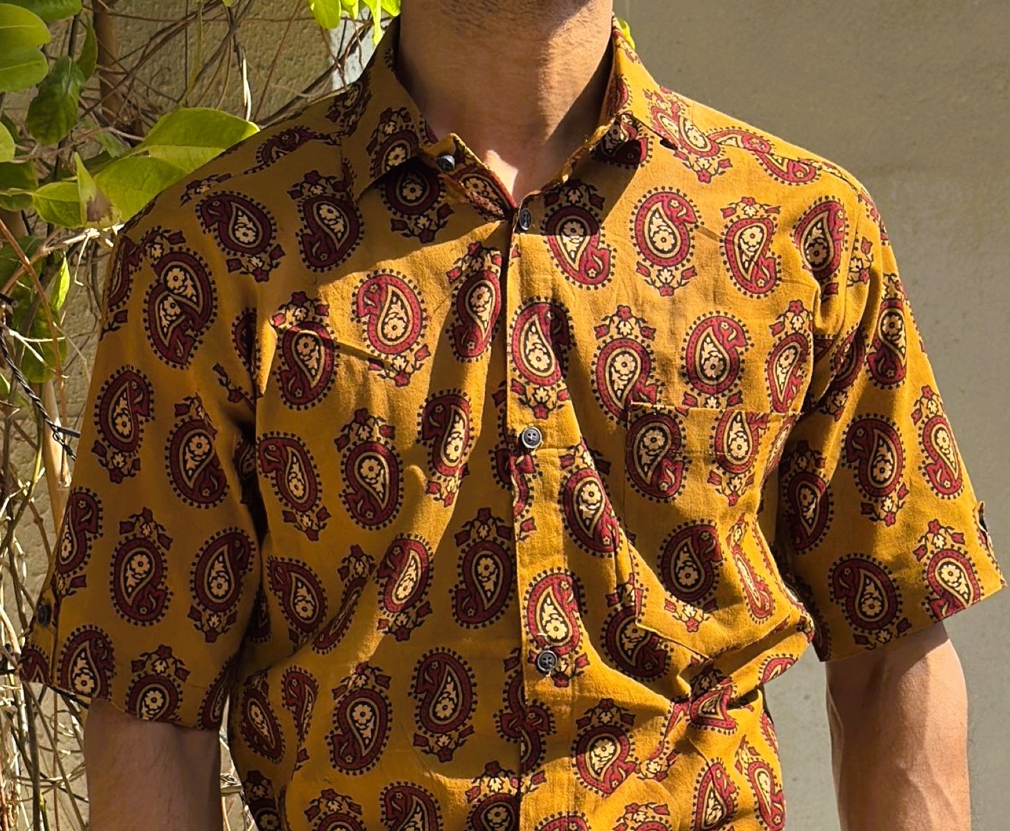 Artsy Mustard Hand Block Print Mens Shirt