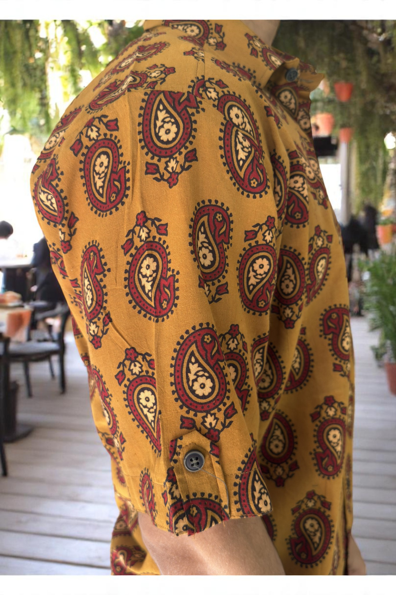 - Care: Hand wash separately in cold water; natural dyes may bleed slightly due to the hand block printing process