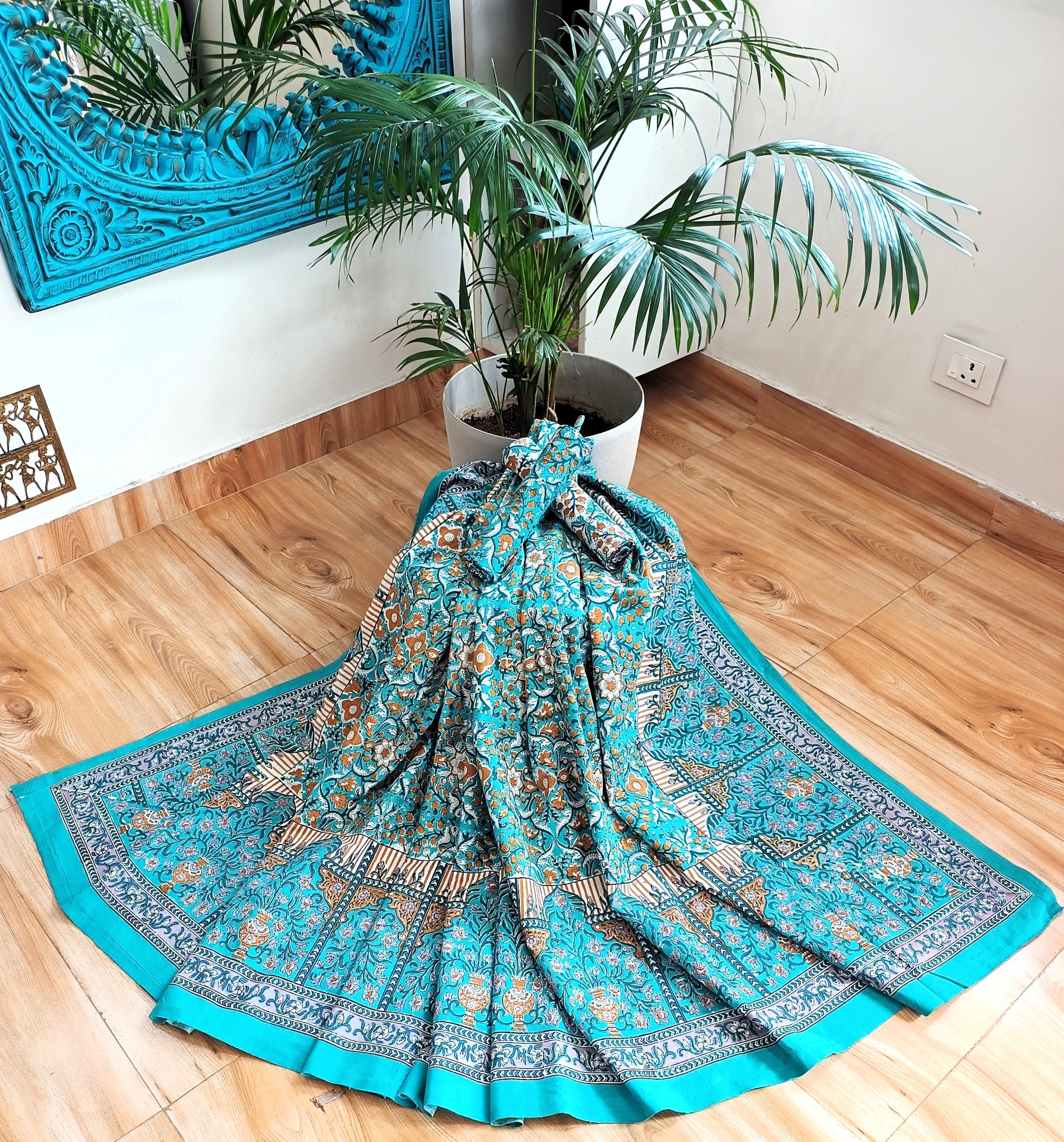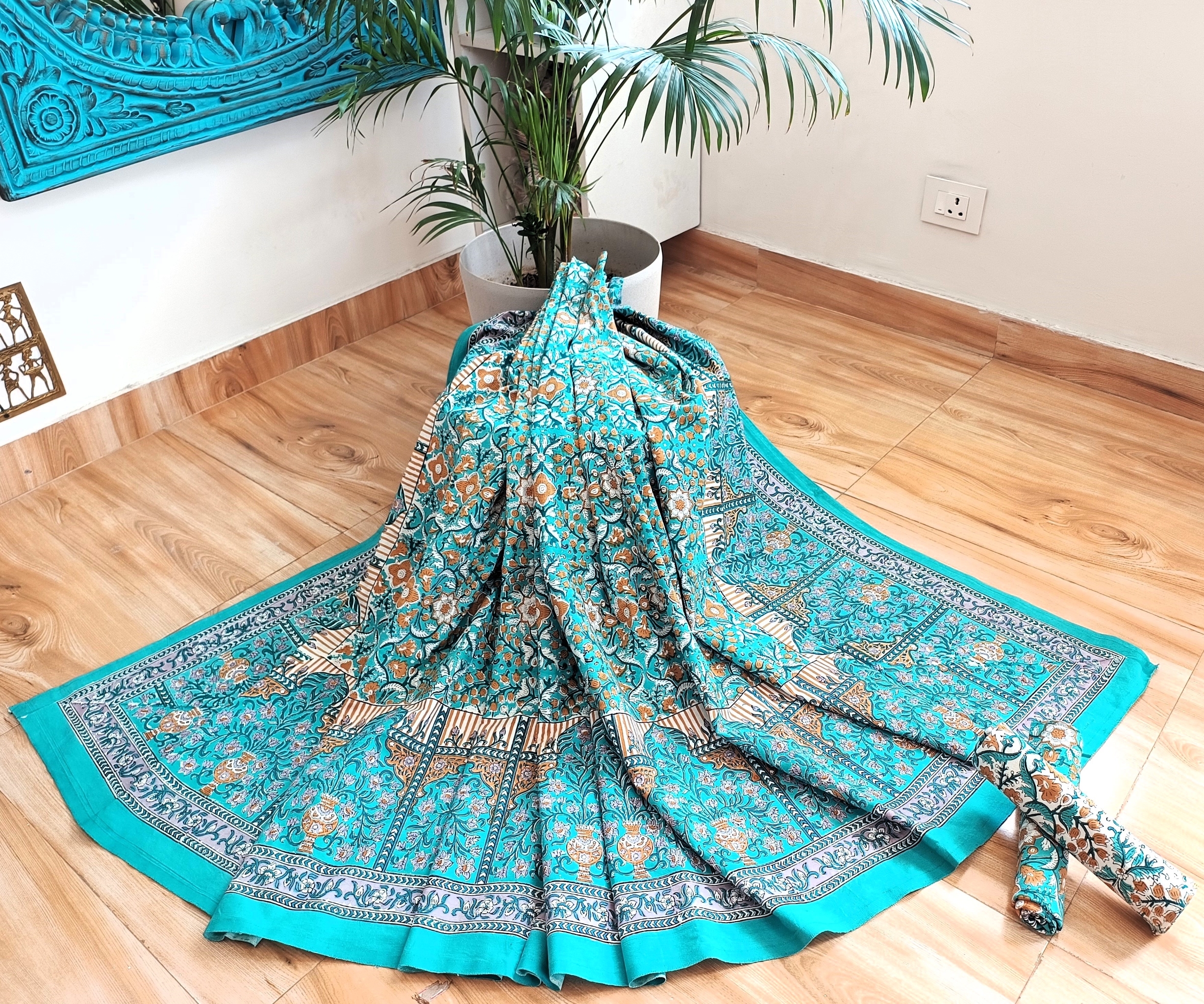 Royal Blue Maroon Handblock Print Double Bedsheet