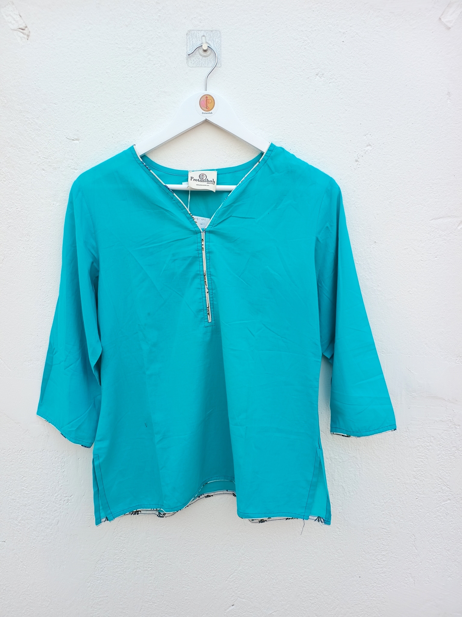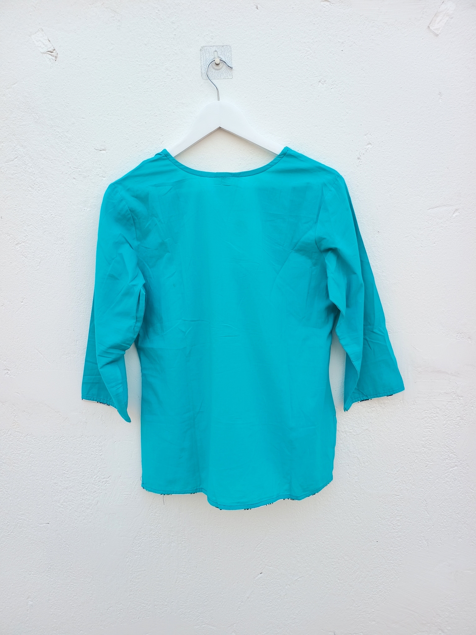 This cotton short top is a stylish and comfortable piece that blends traditional charm with modern appeal. Made from soft, breathable cotton, it offers a light, airy feel—perfect for warm weather .. The top features a classic design with piping details around the neck, adding a subtle touch of sophistication and contrast. Its 3/4th sleeves offer a flattering, versatile length, making it suitable for various occasions. Whether paired with jeans, leggings, or a skirt, this top effortlessly combines ease and elegance, creating a relaxed yet chic look. Its timeless design and comfortable fit make it an essential addition to any wardrobe.