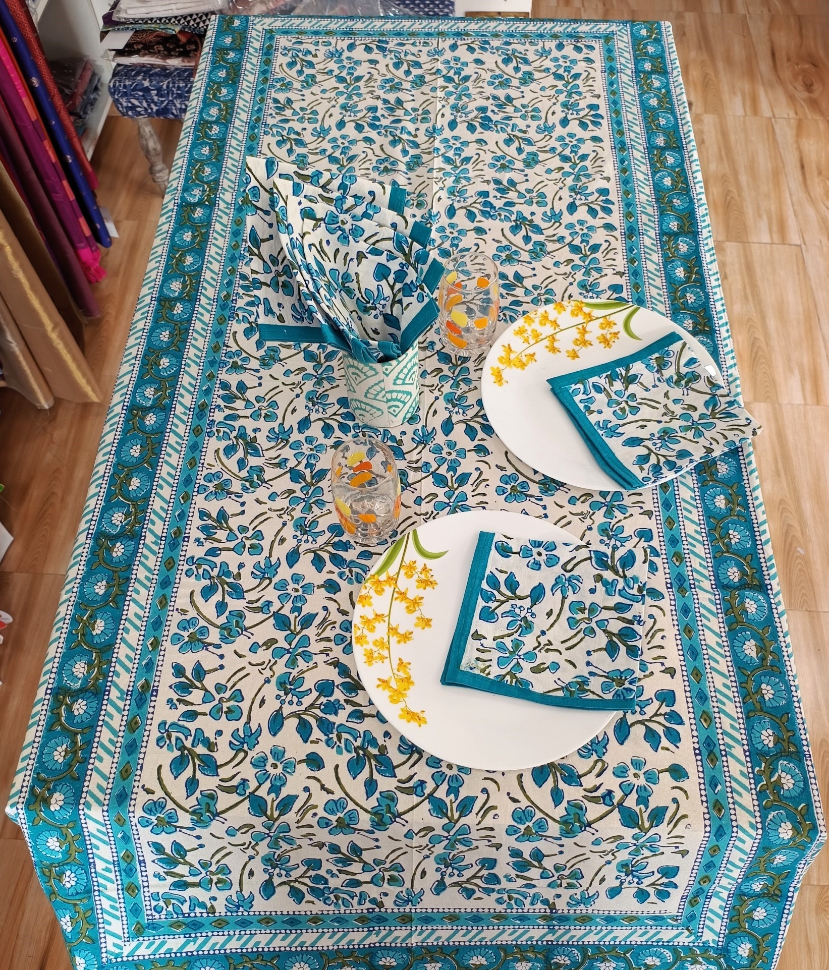 Handblock Print Cotton 6 Seater Rectangular Table Cover
