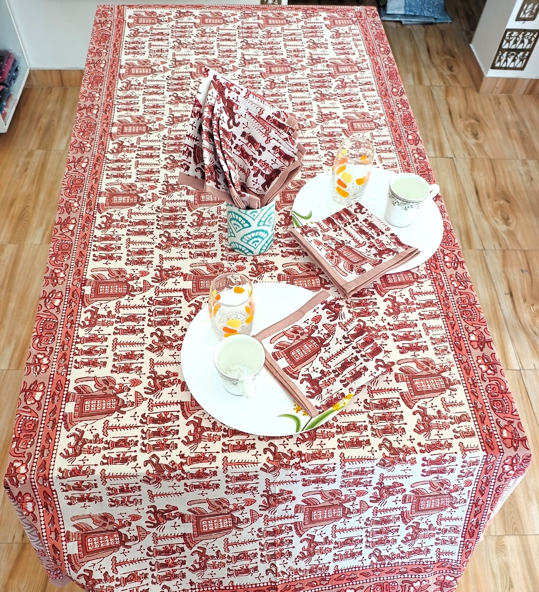 Handblock Print Cotton 6 Seater Rectangular Table Cover