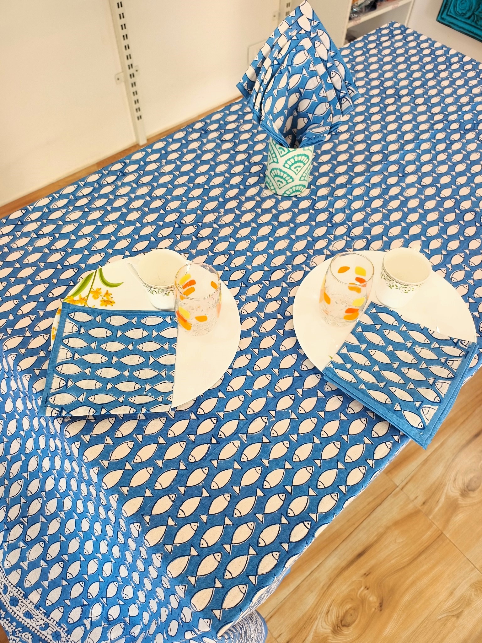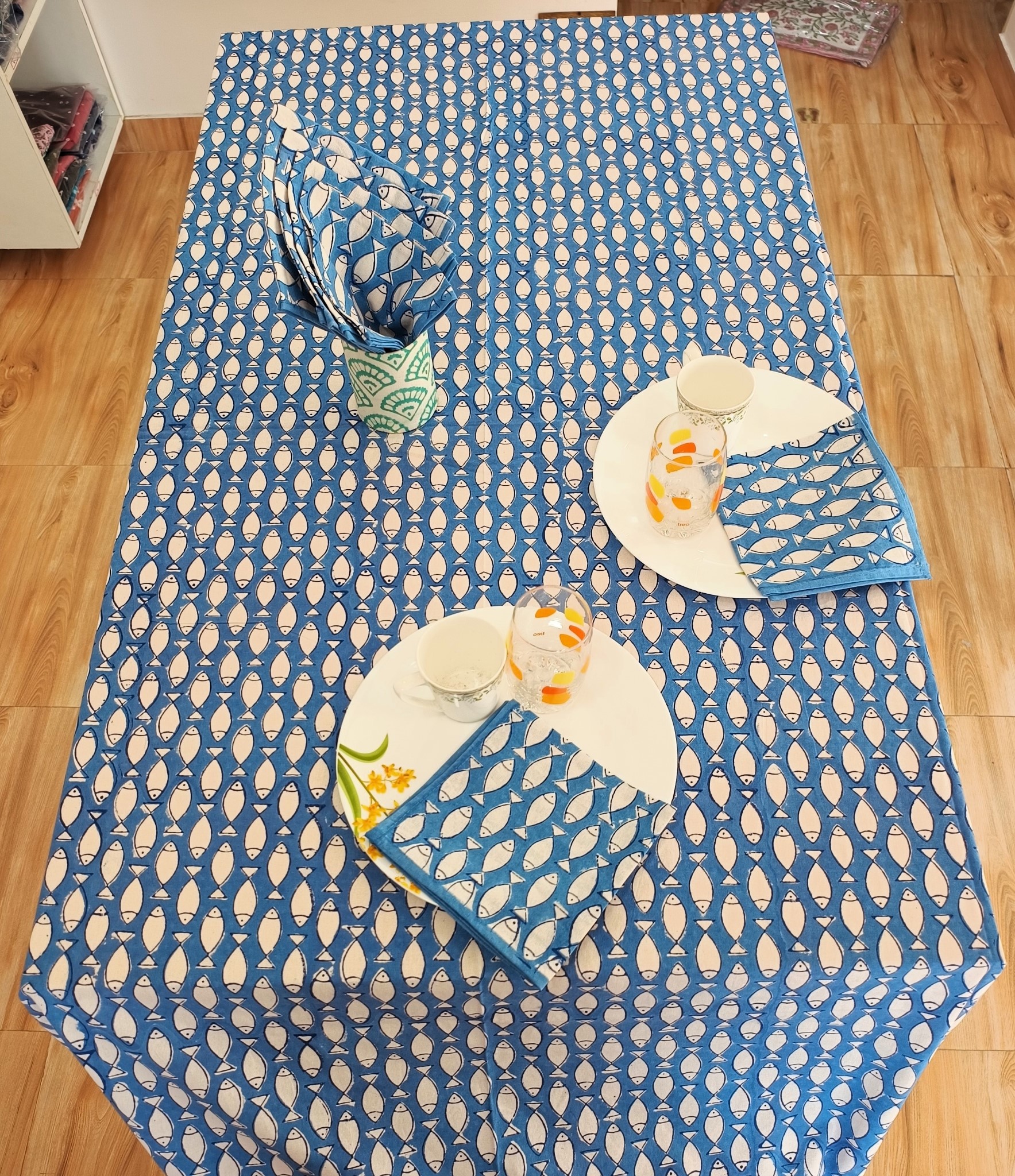 Handblock Print Cotton 6 Seater Rectangular Table Cover