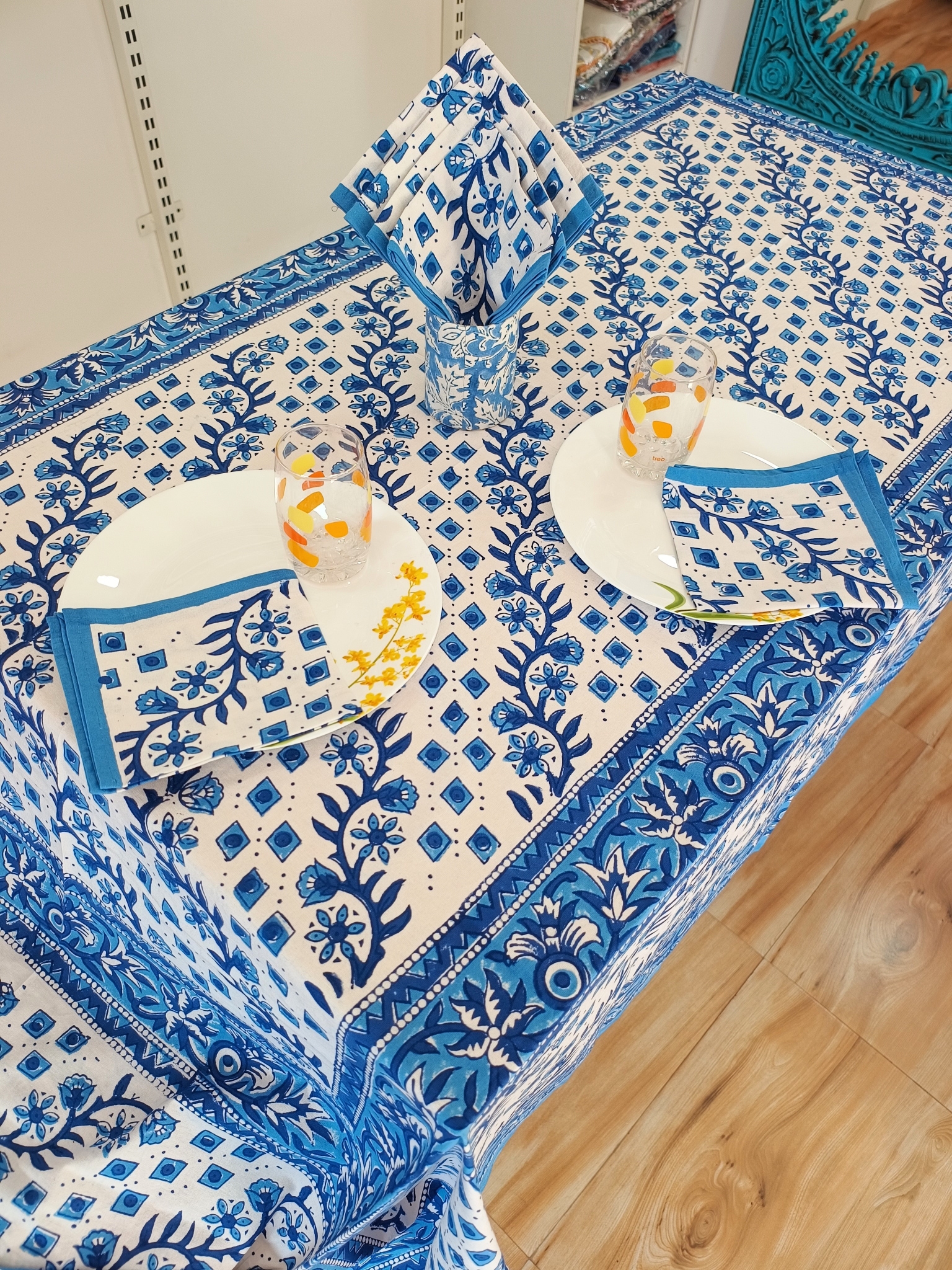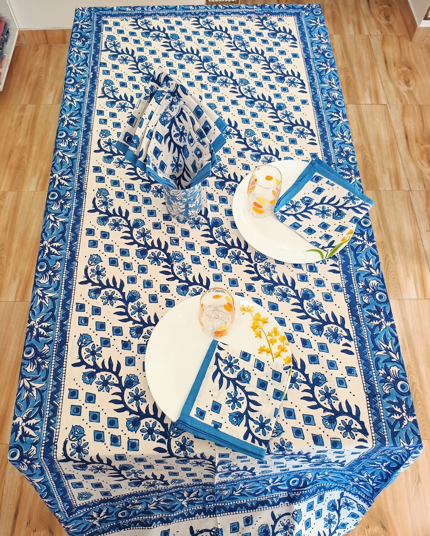Handblock Print Cotton 6 Seater Rectangular Table Cover