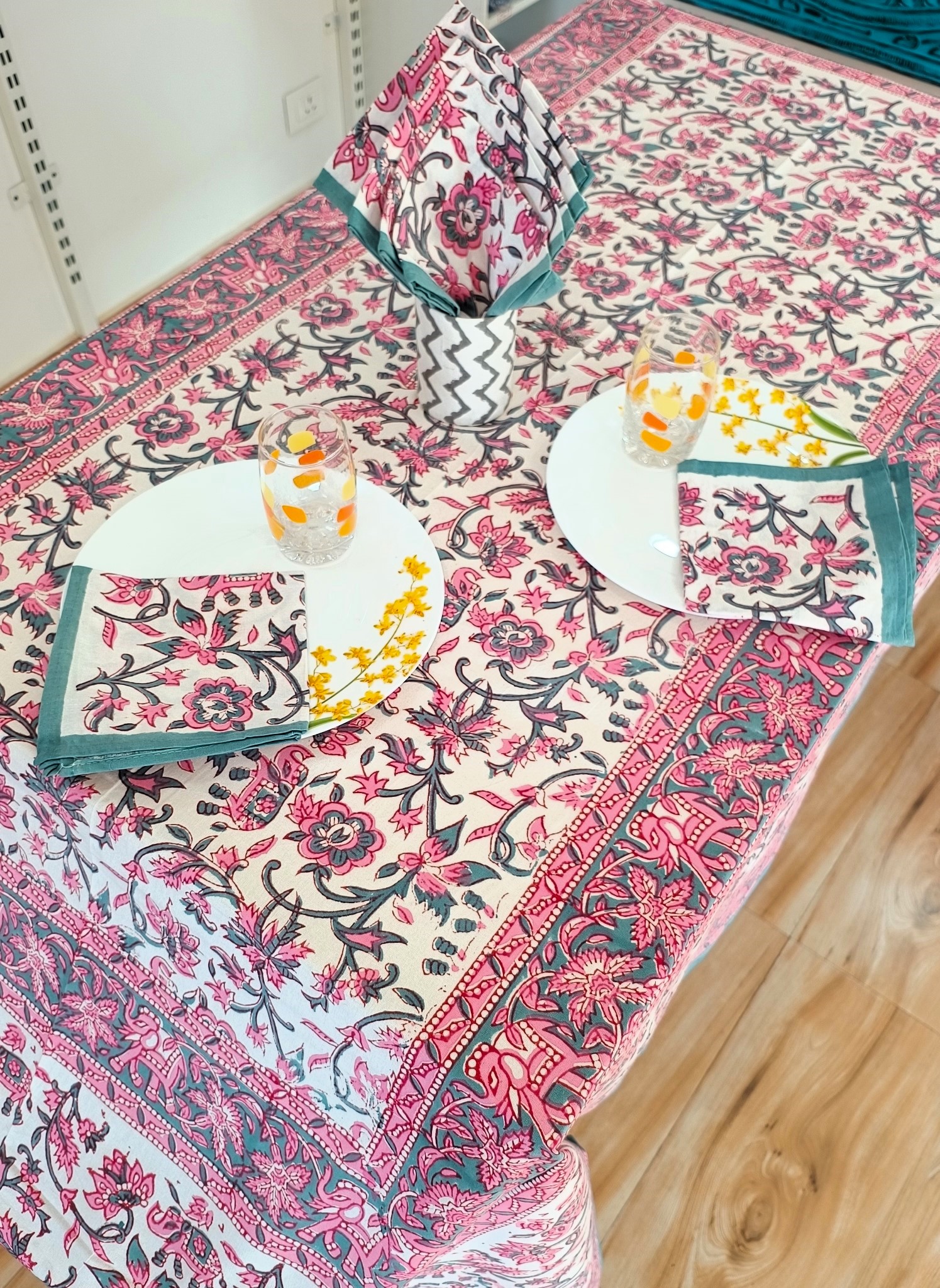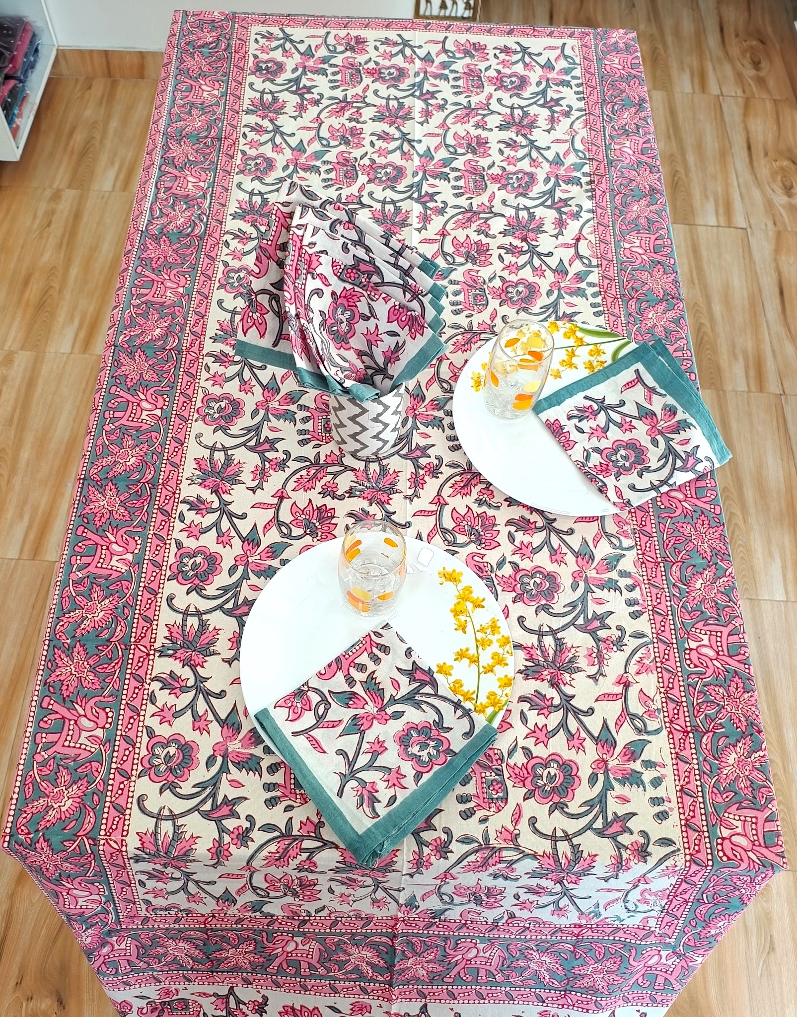 Handblock Print Cotton 6 Seater Rectangular Table Cover