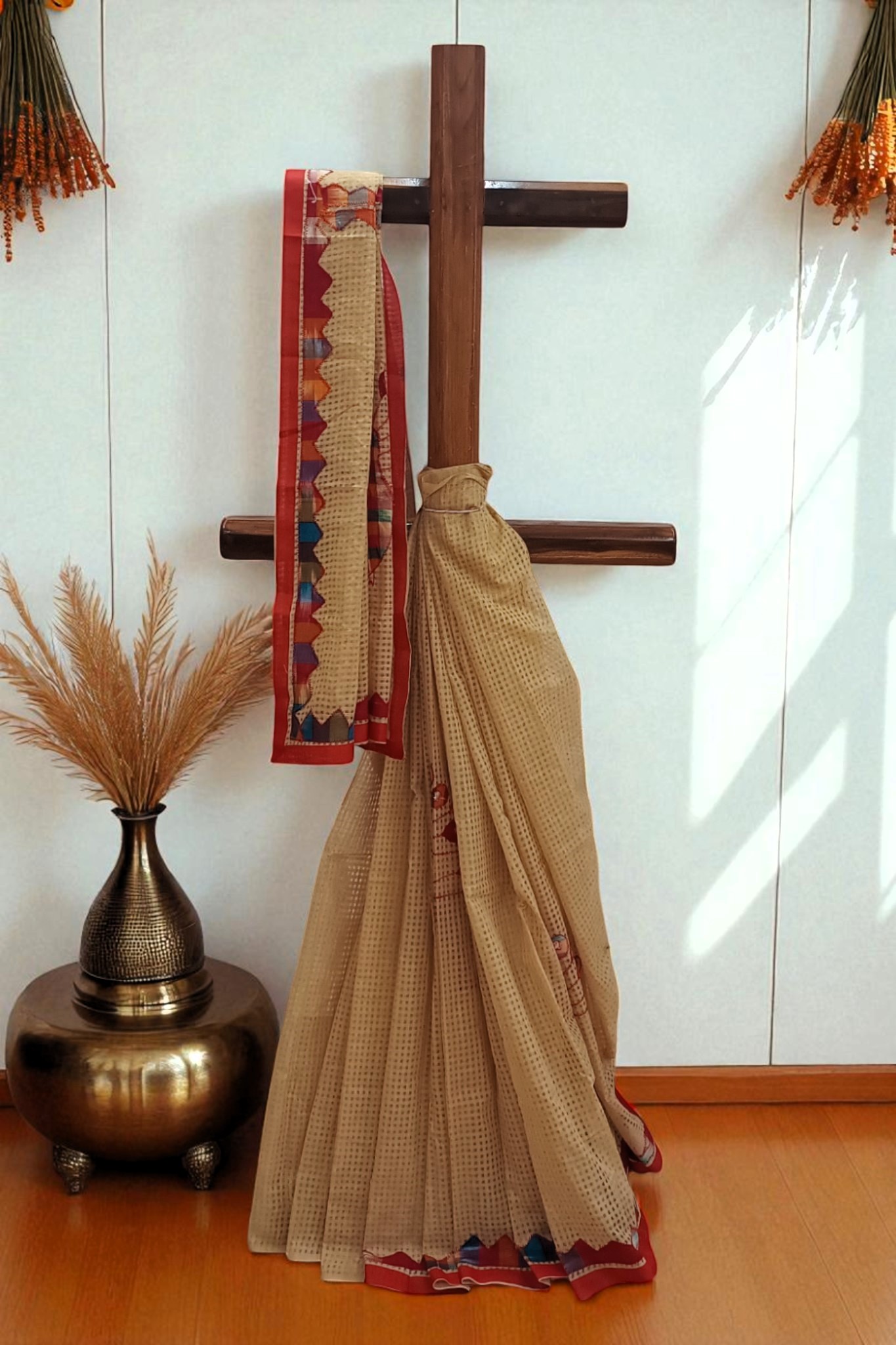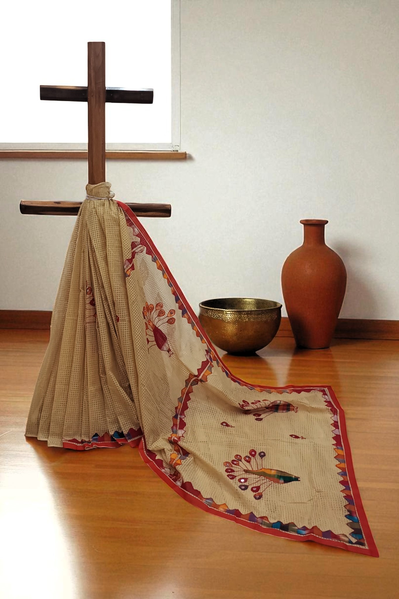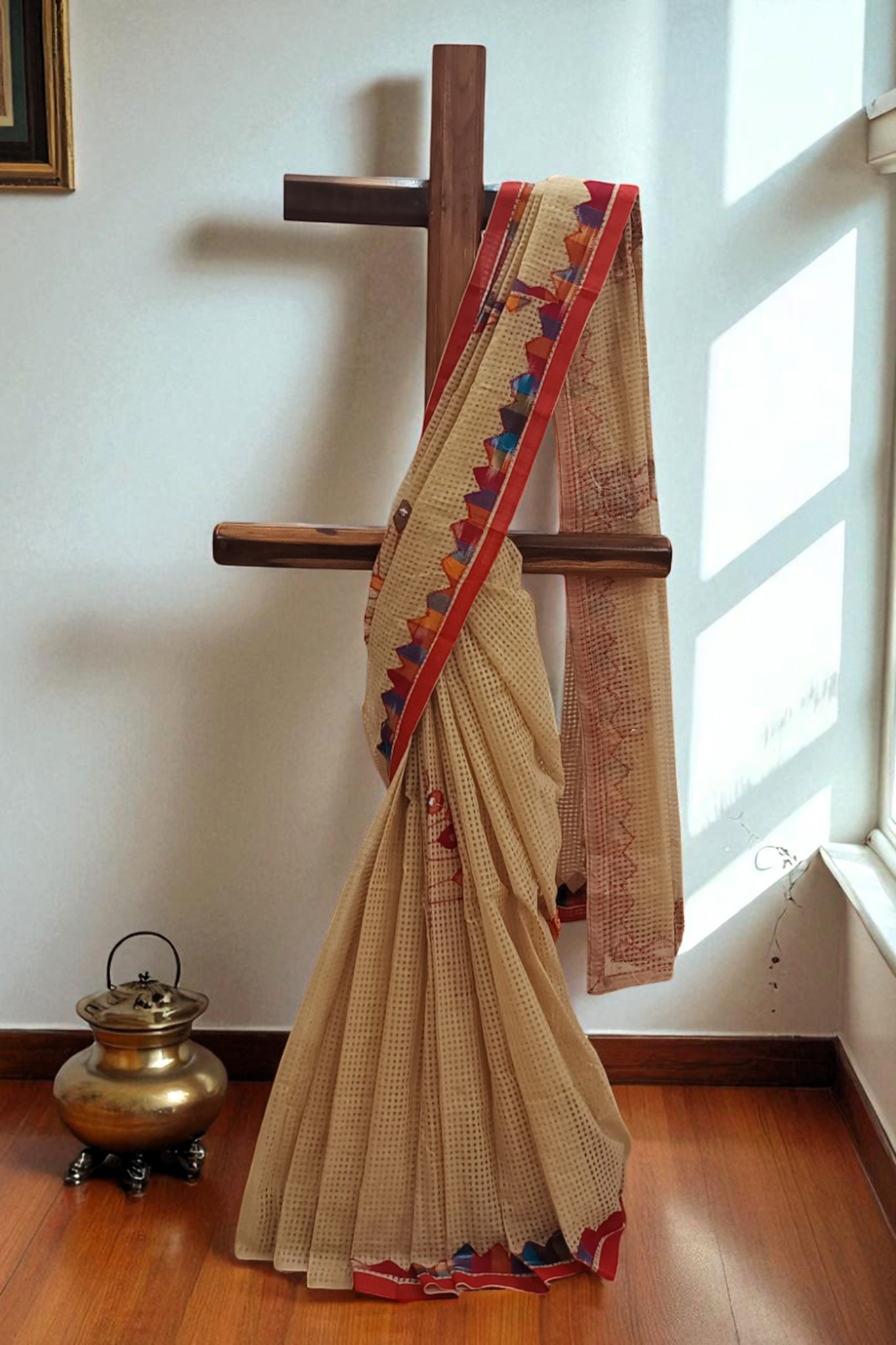 Grace in Every Thread, Art in Every Appliqué-A breezy Kota cotton saree adorned with delicate handcrafted appliqué for timeless elegance.
