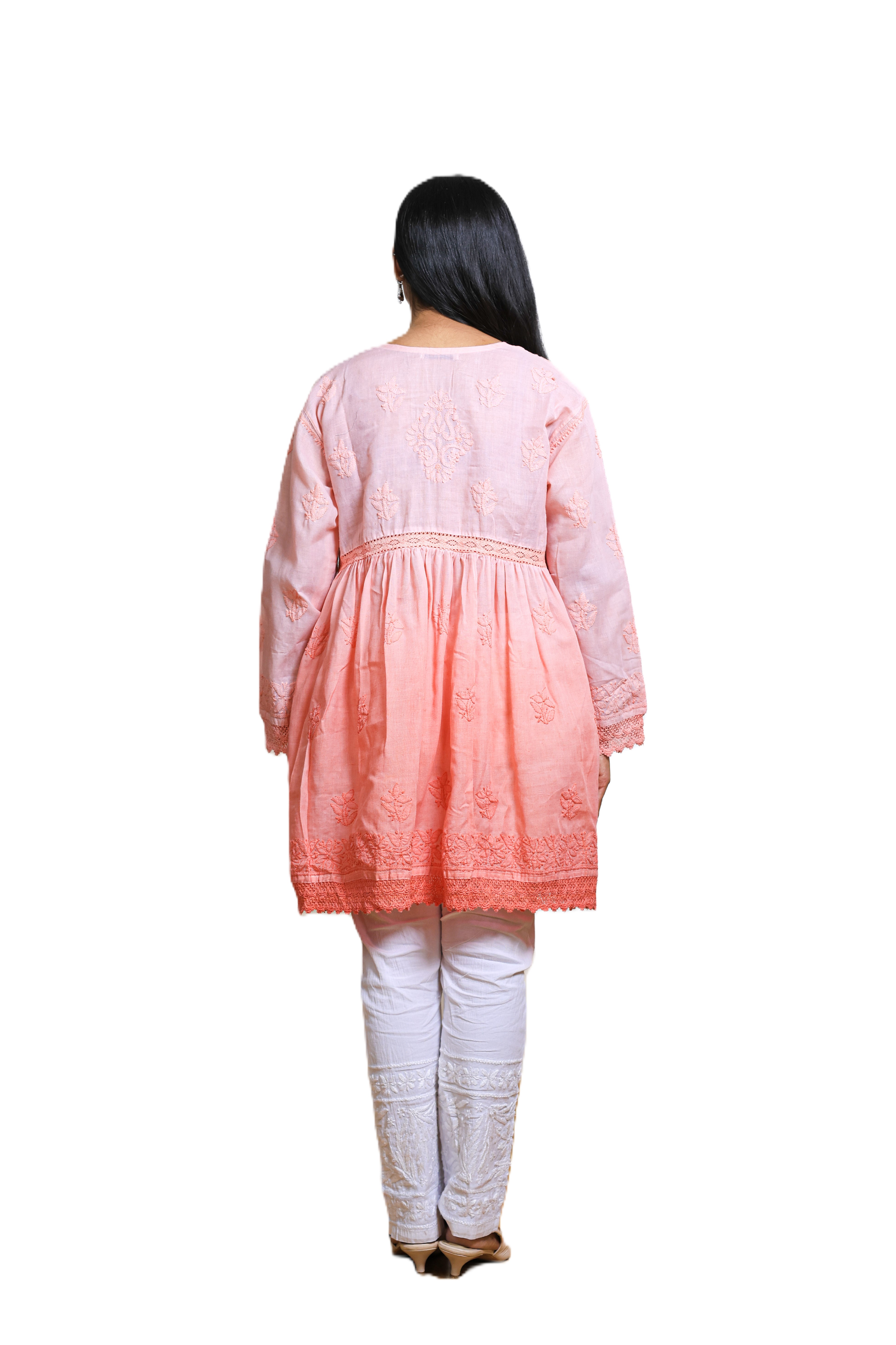 Soft hues, strong charm - A soft ombre peach cotton kurti with timeless Chikankari - light, elegant, and effortlessly graceful.