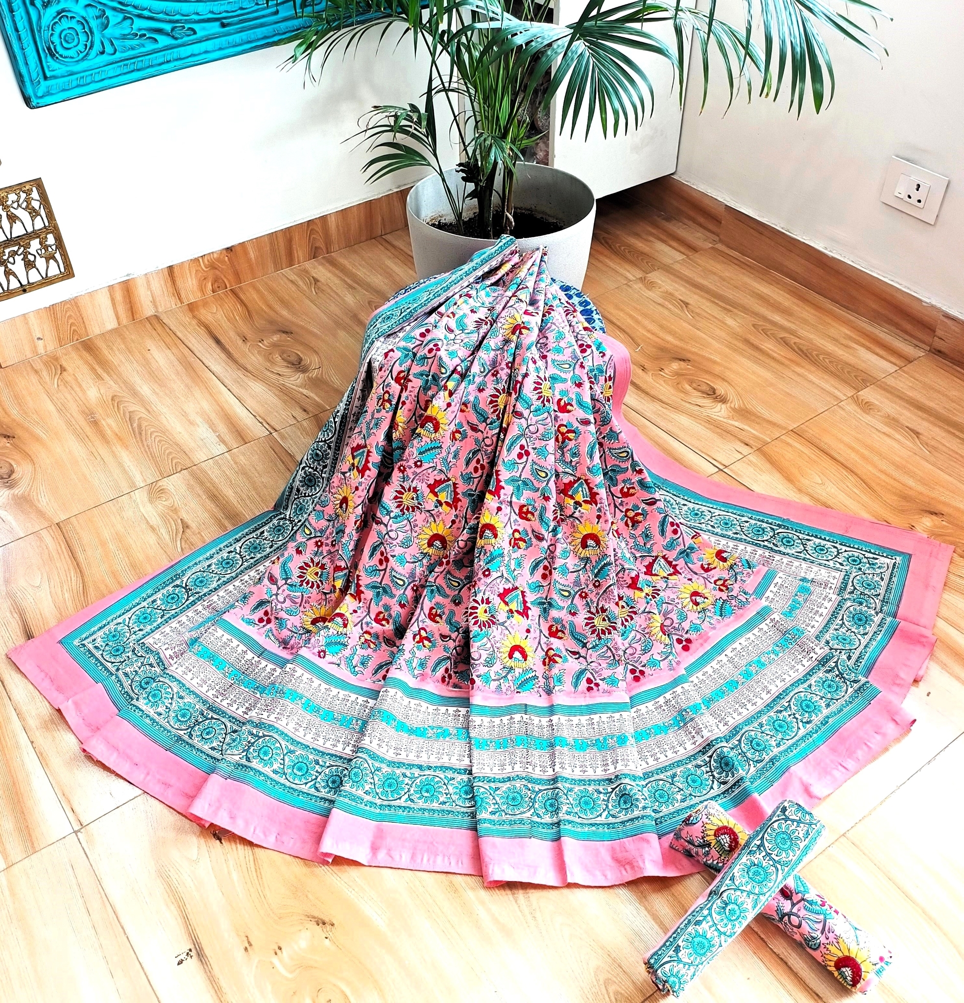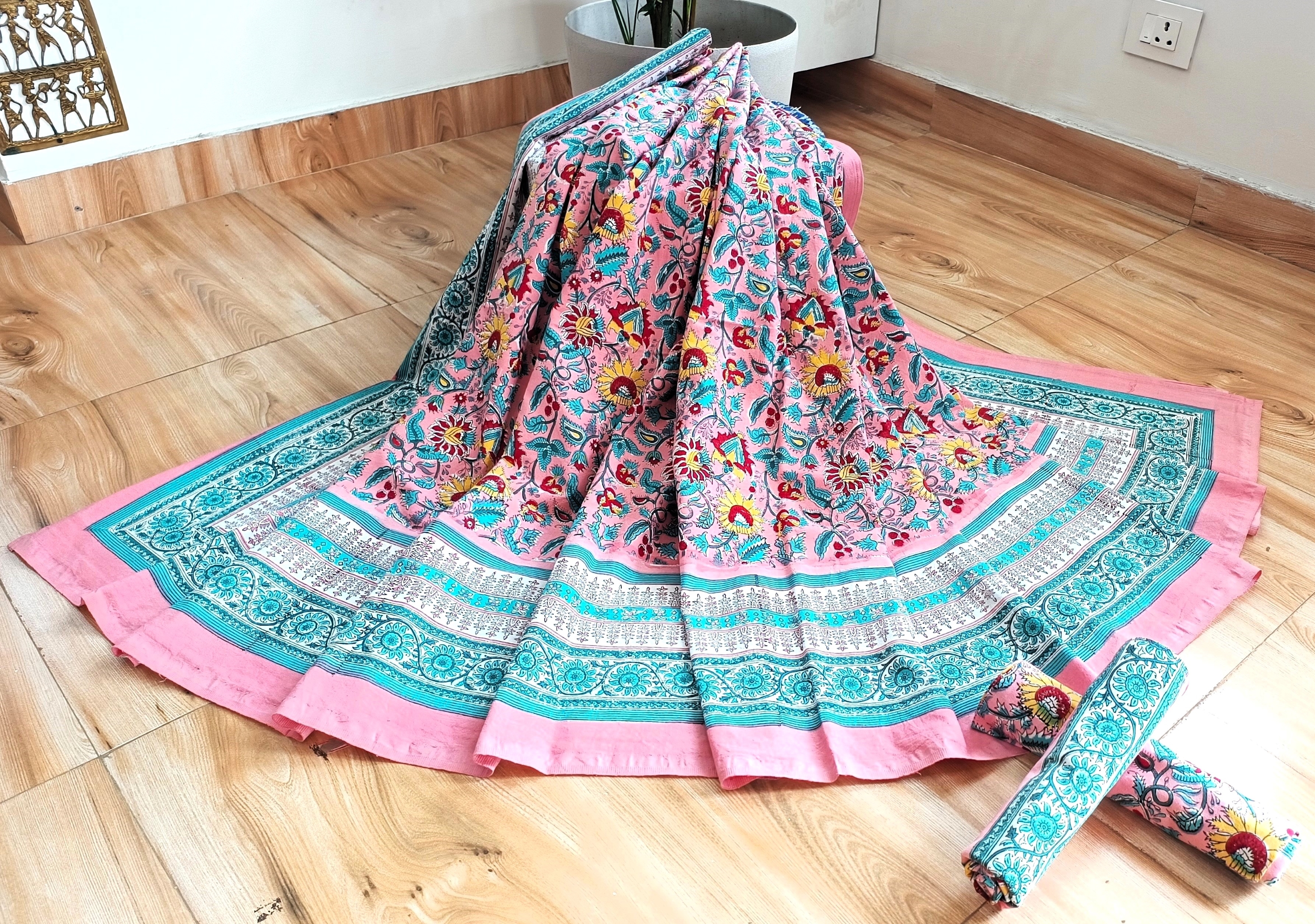Pink Multi Handblock Print Doubble Bedsheet Handcrafted by pretanshah wear craft