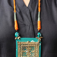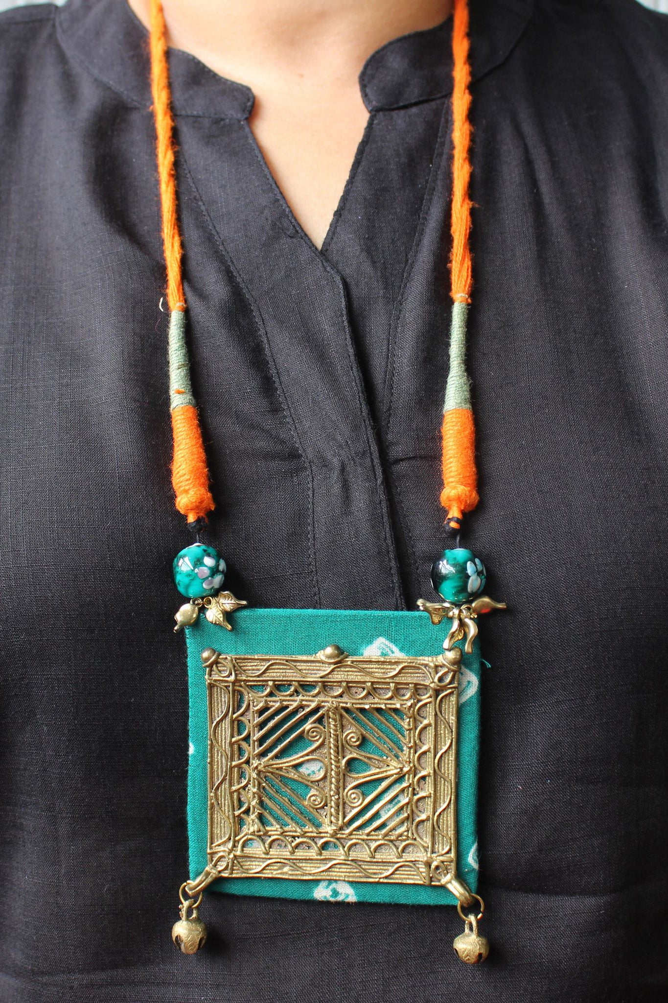 Dhokra (Brass) Designer Necklace on Handblock Print Base