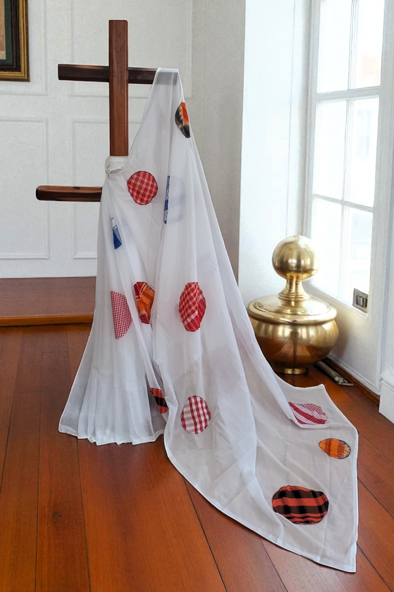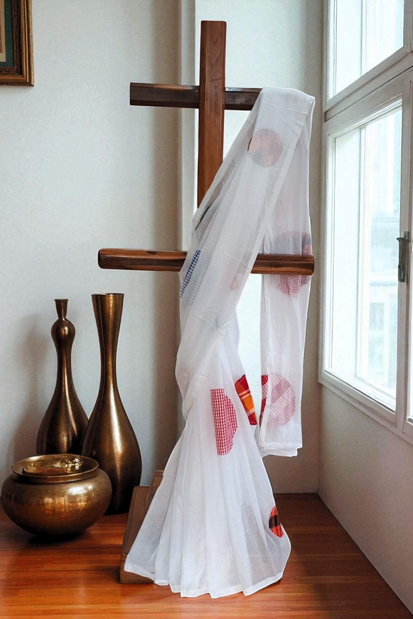 Grace in Every Thread, Art in Every Appliqué-A breezy cotton saree adorned with delicate handcrafted appliqué for timeless elegance.