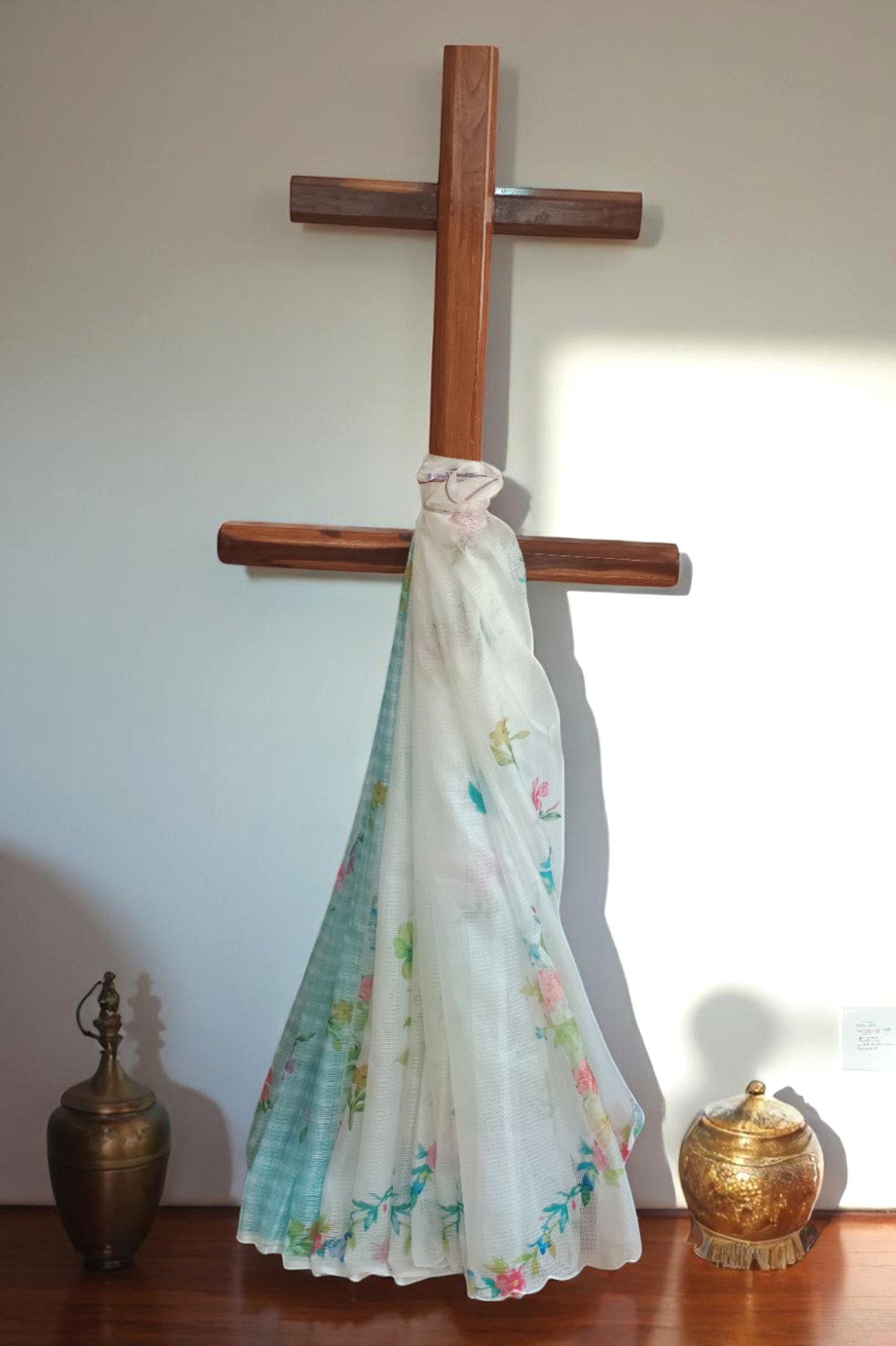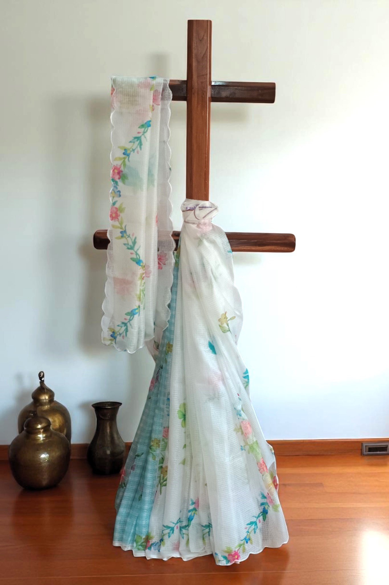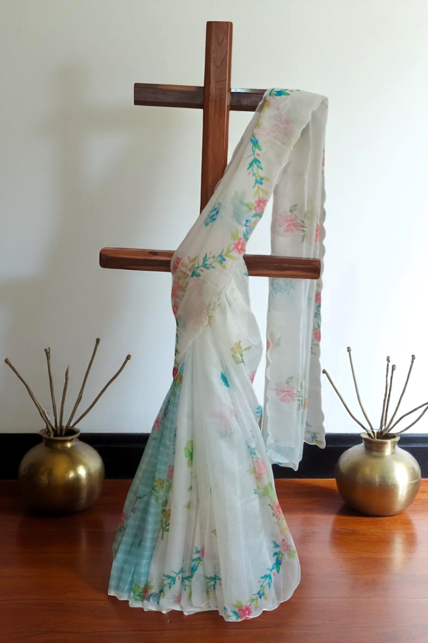 Breeze in Every Drape, Beauty in Every Thread-A breezy floral Kota cotton saree with matching blouse piece, blending comfort with everyday elegance.