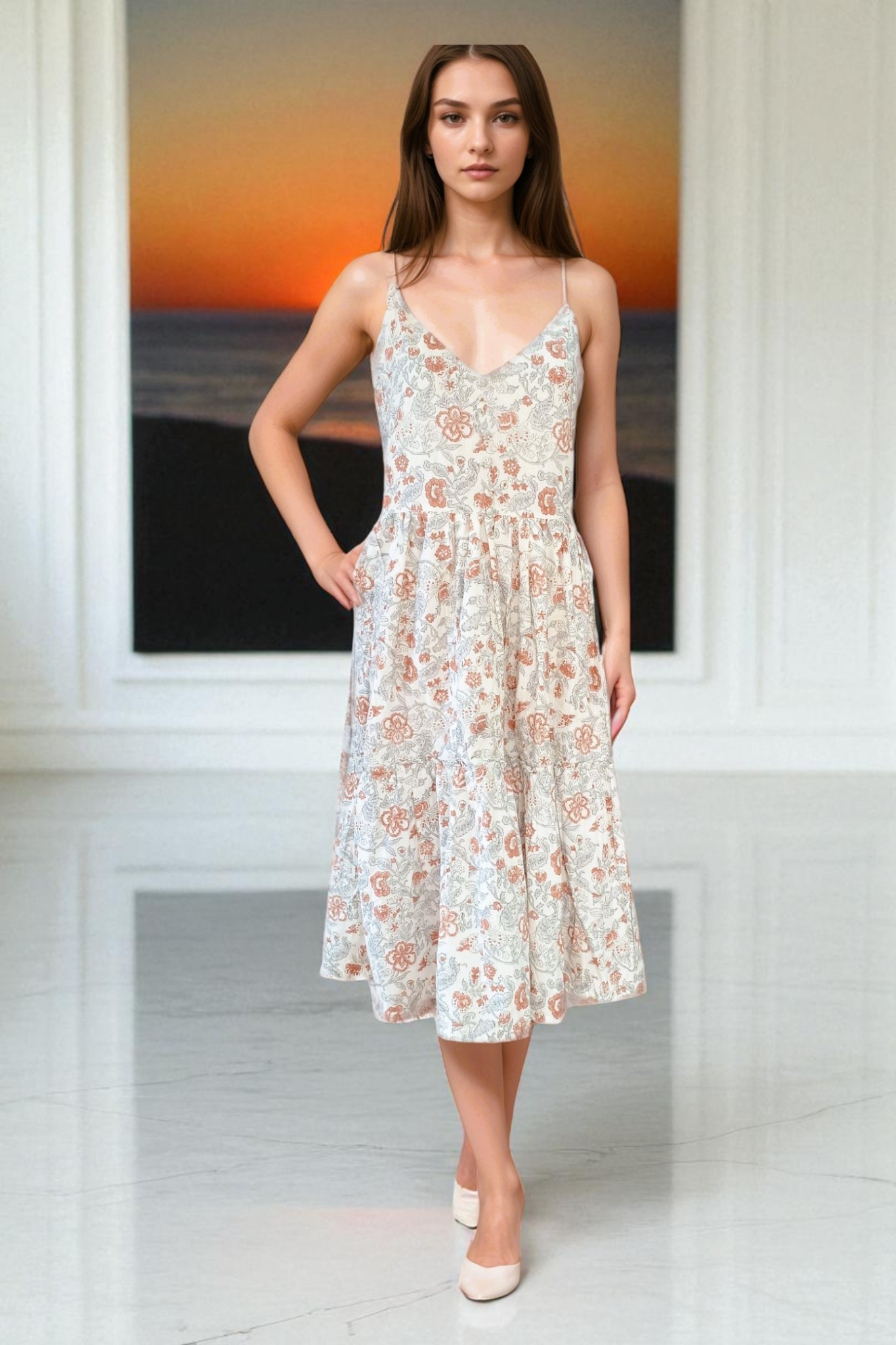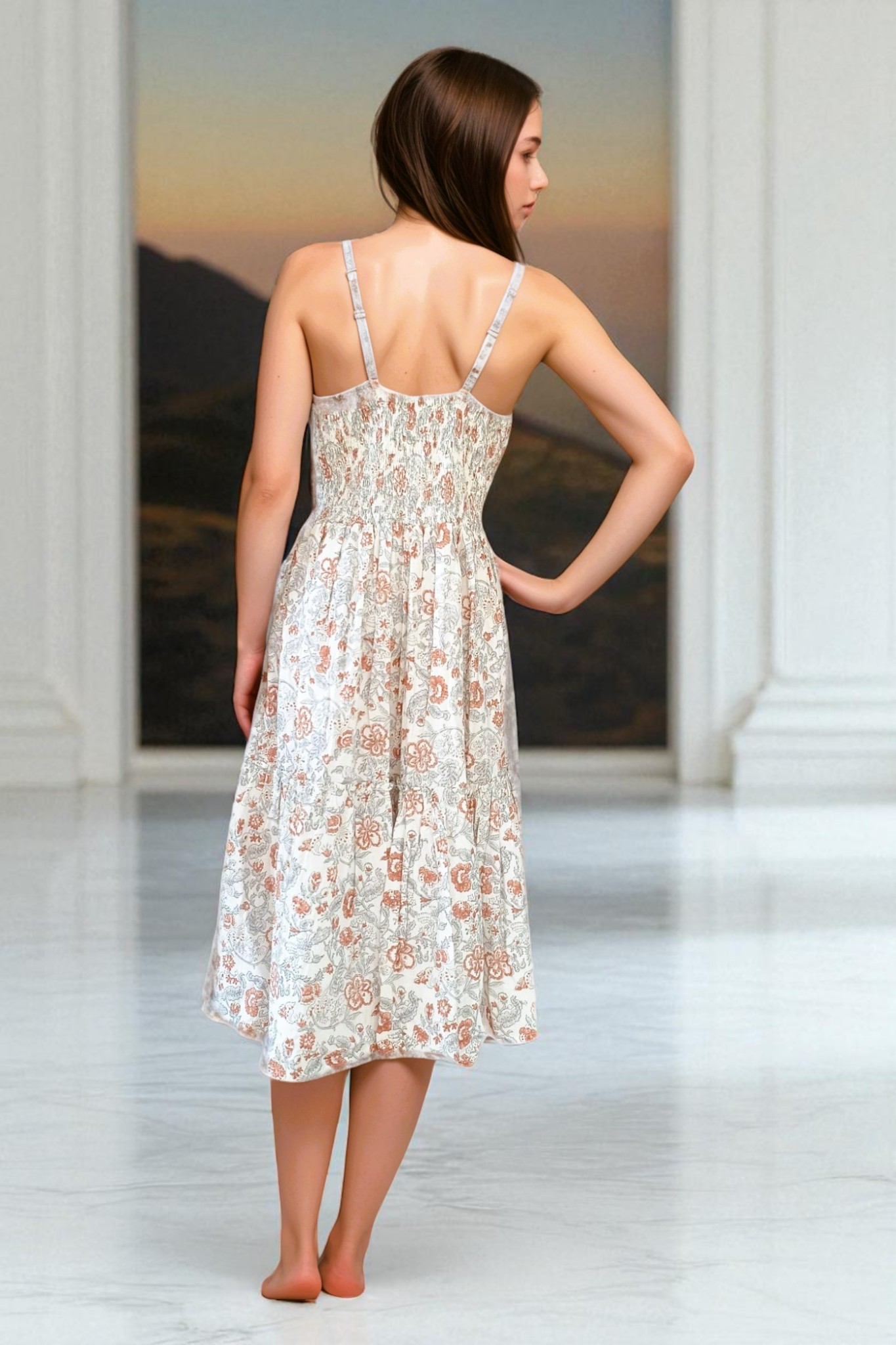 A handcrafted white and red cotton dress with smocking and delicate straps—light, breezy, and perfect for sunlit days.