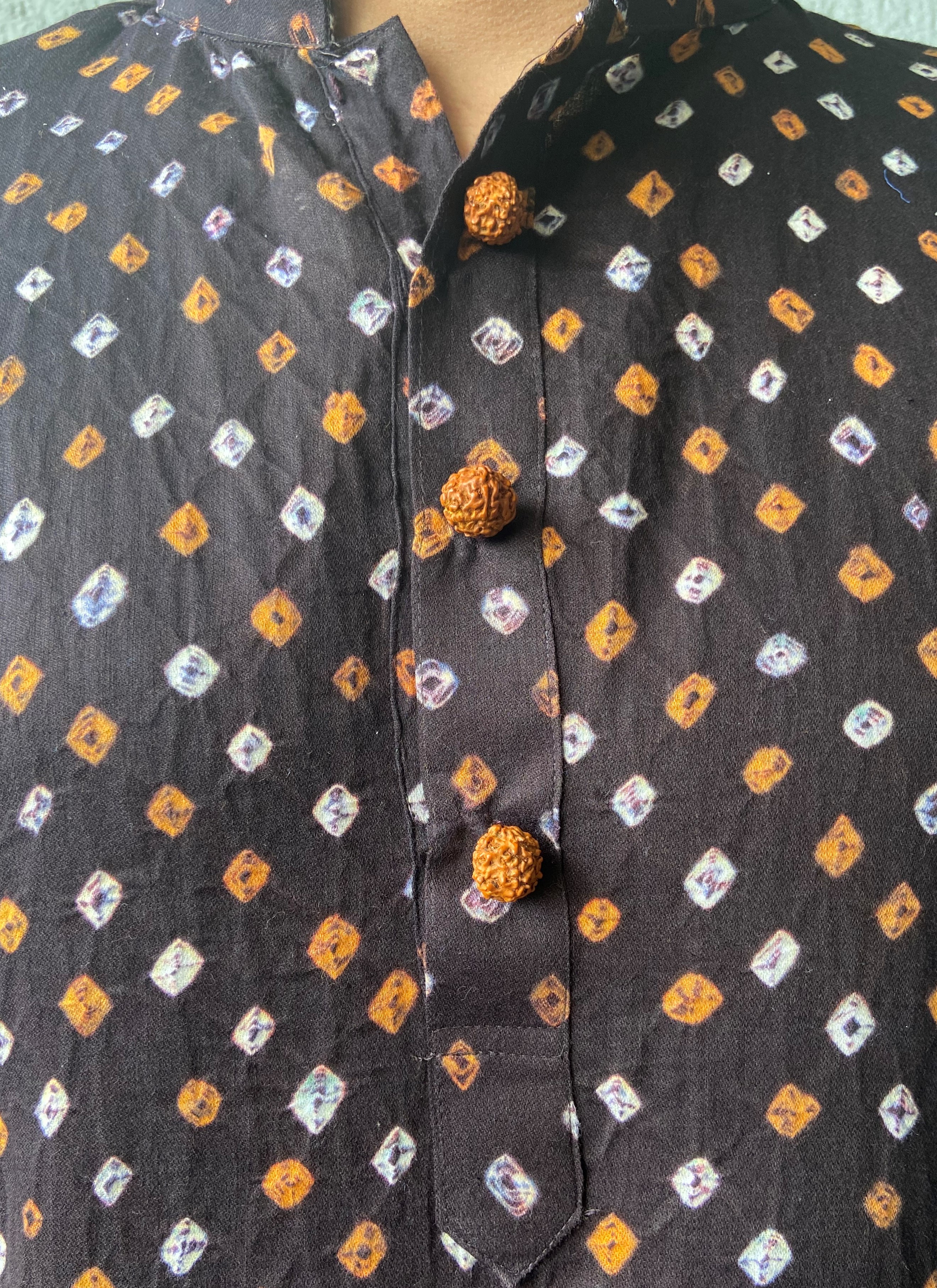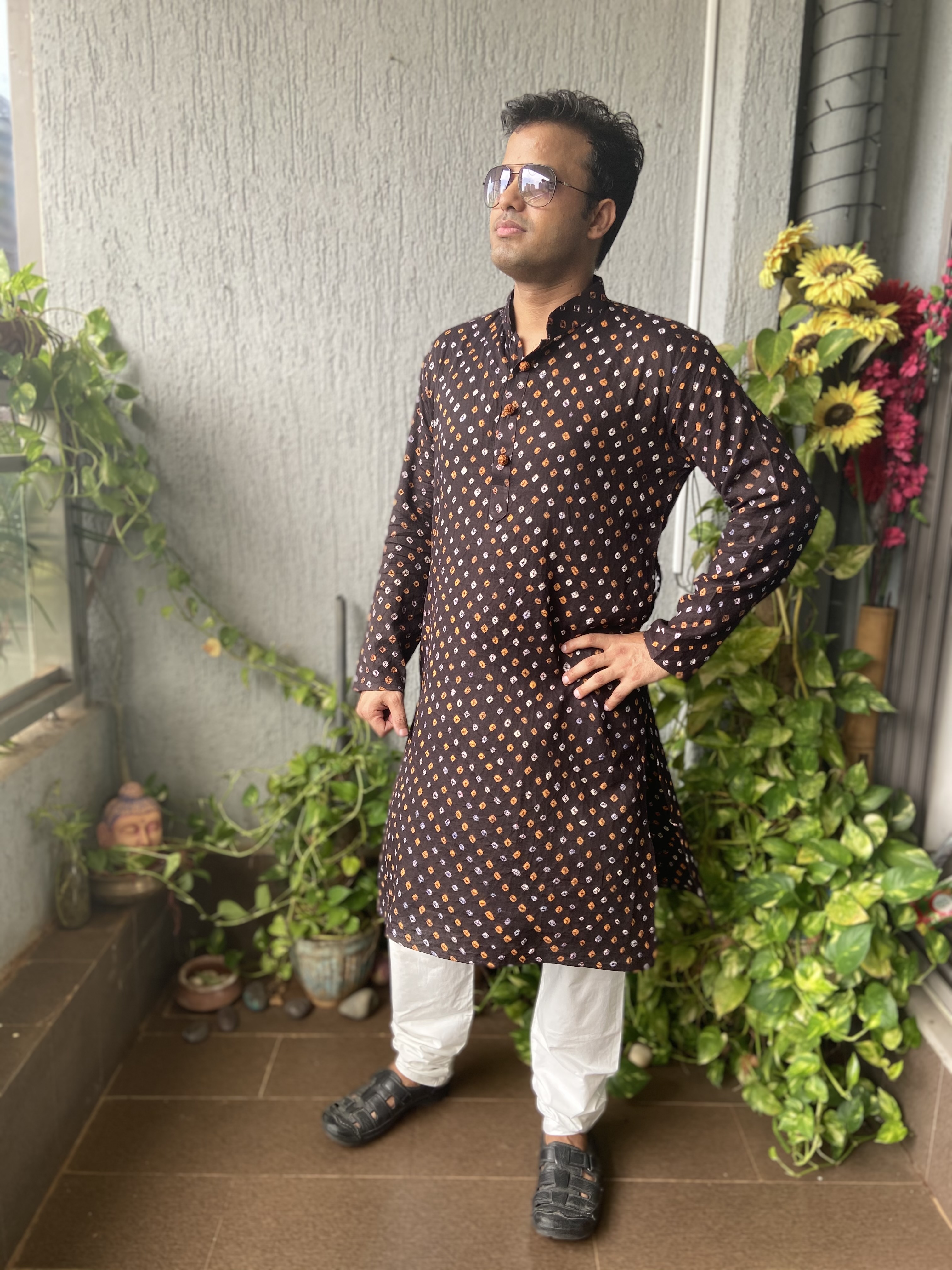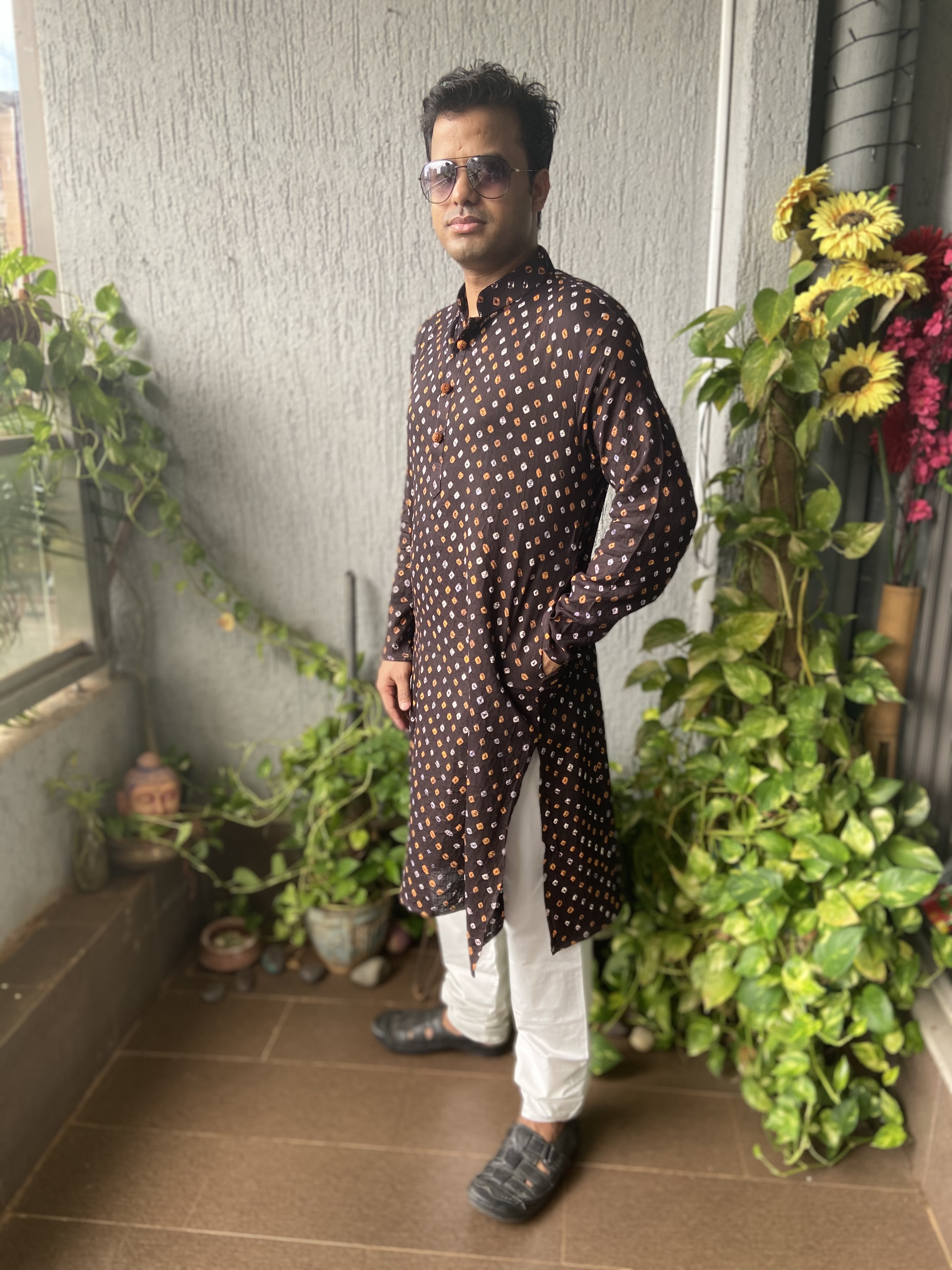 Earthy Hues, Timeless Threads - An earthy brown Bandhani cotton kurta that brings grounded elegance and easy comfort—with pockets.