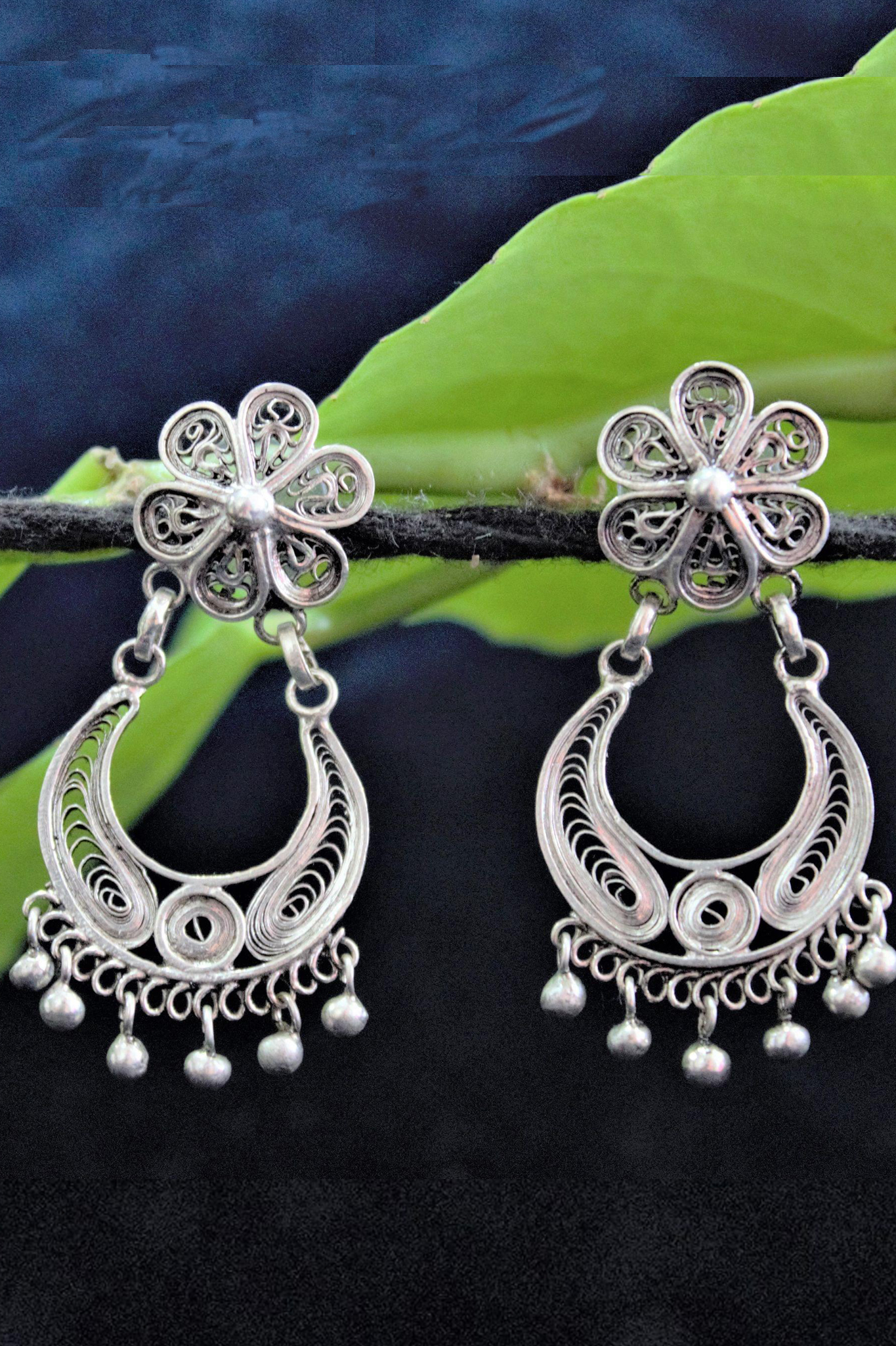 Chandbali Floral Medial Silver Filigree Stud Earrings