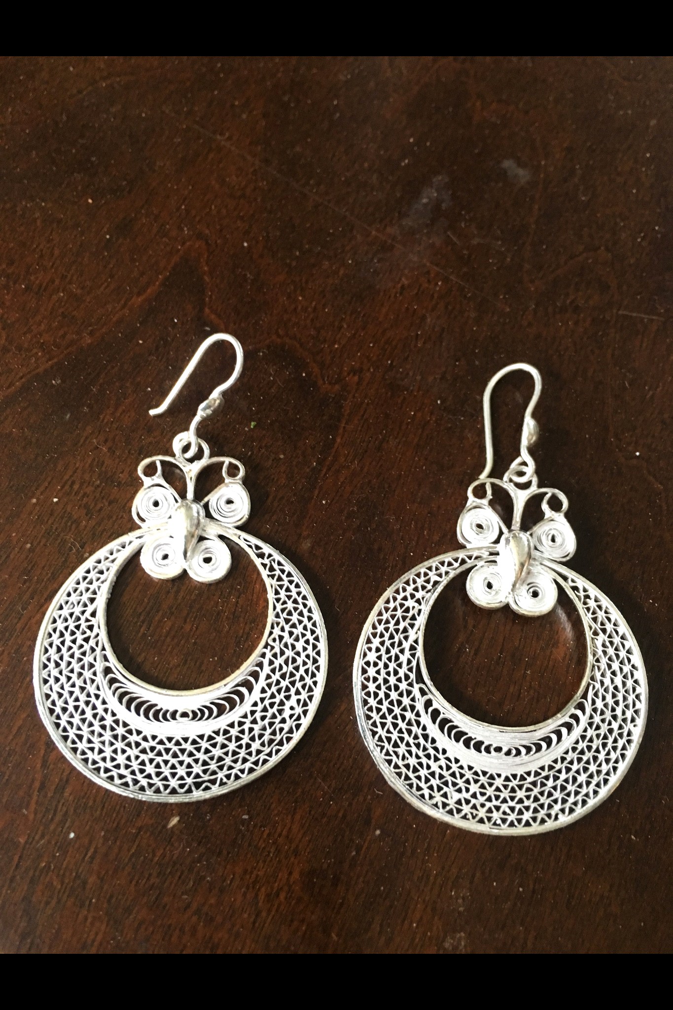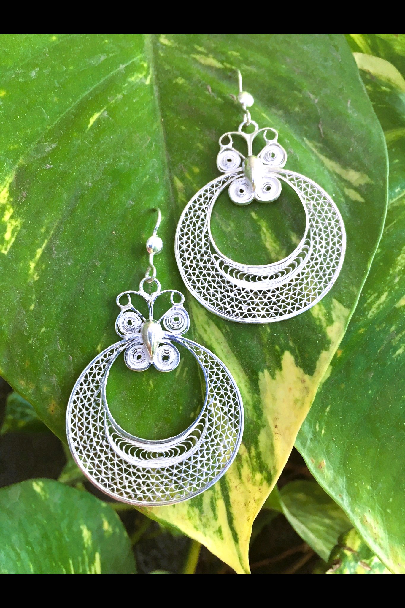 Moon Butterfly Silver Filigree Earrings