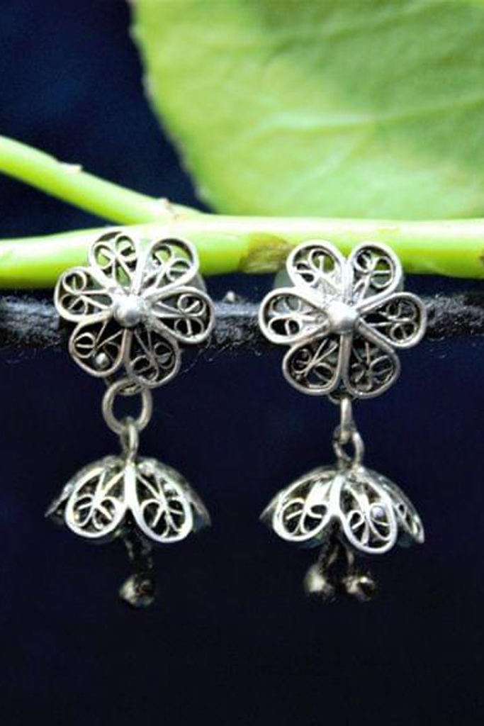 Enhance your style with this meticulous handcrafted Silver Oxidised Stud Jhumki perfect for your everyday wear.