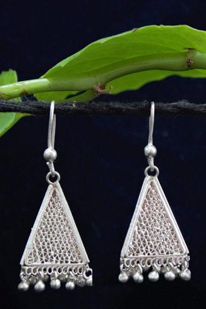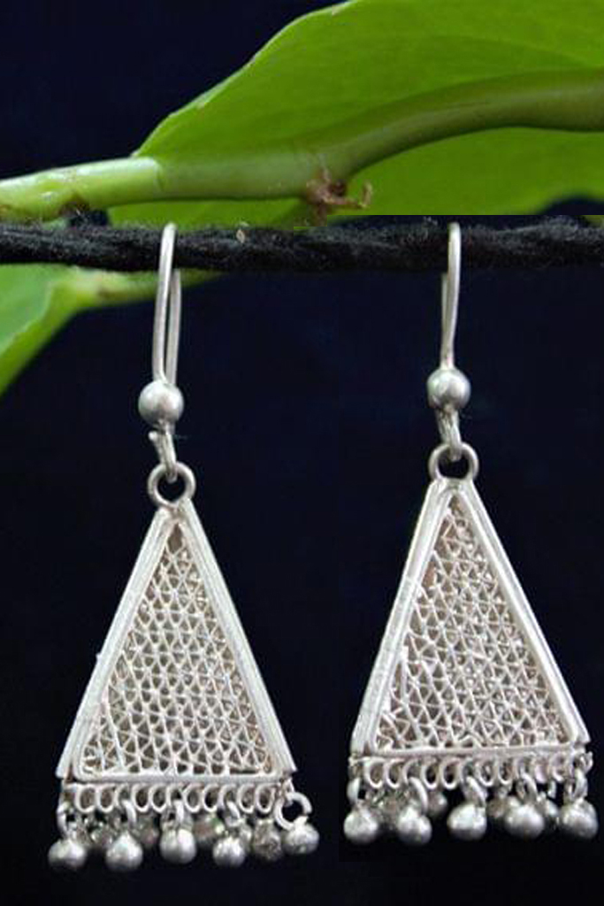 Enhance your style with this meticulous handcrafted Silver Triangle Jhumki perfect for your everyday wear.
